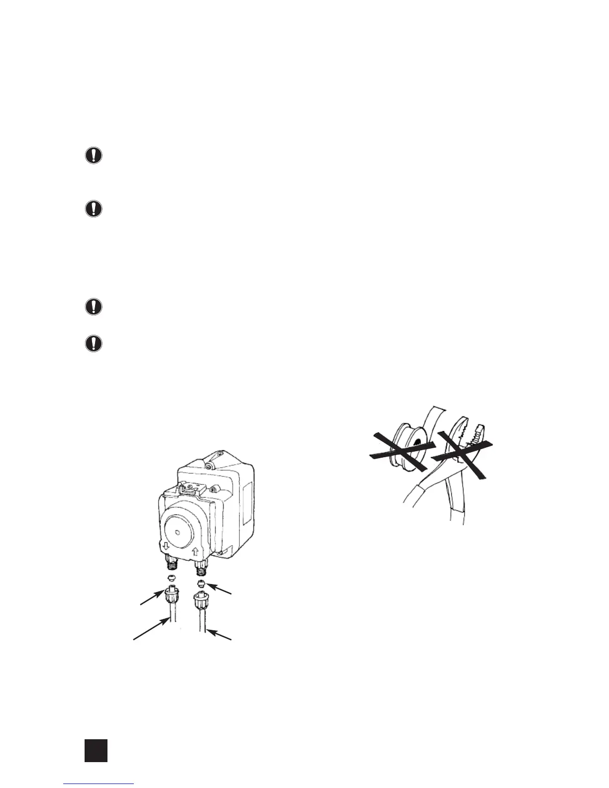DO NOT use thread sealant tape on pump tube connections or tools to