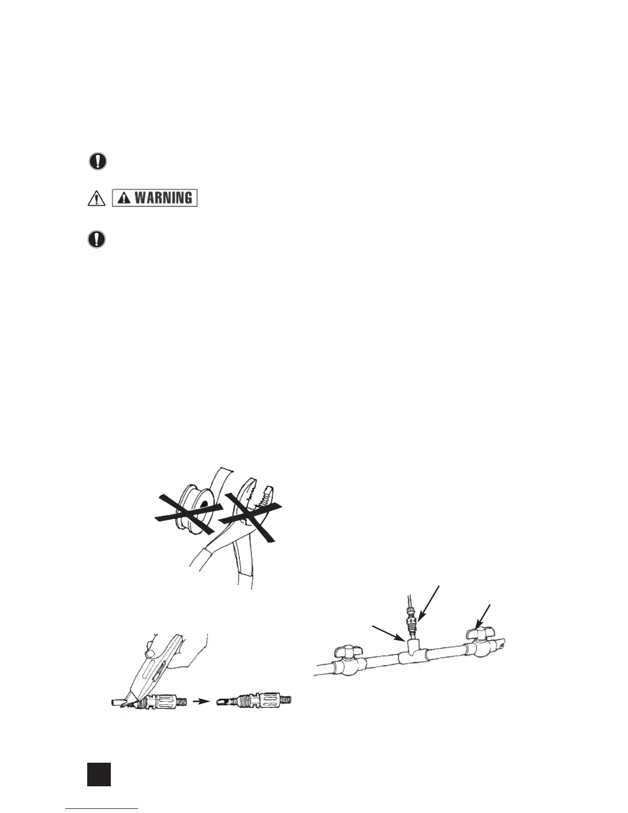 DO NOT use thread sealant tape on pump tube connections or tools to