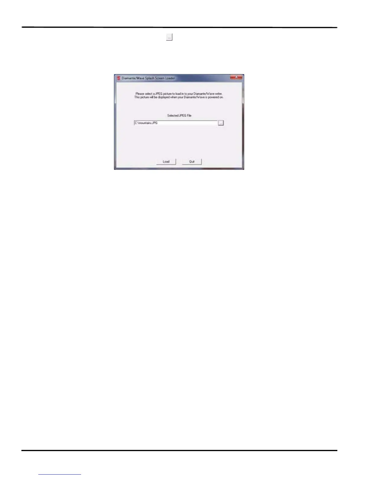 11. The path and file name of the selected picture displays in the Diamante Splash Screen Loader dialog