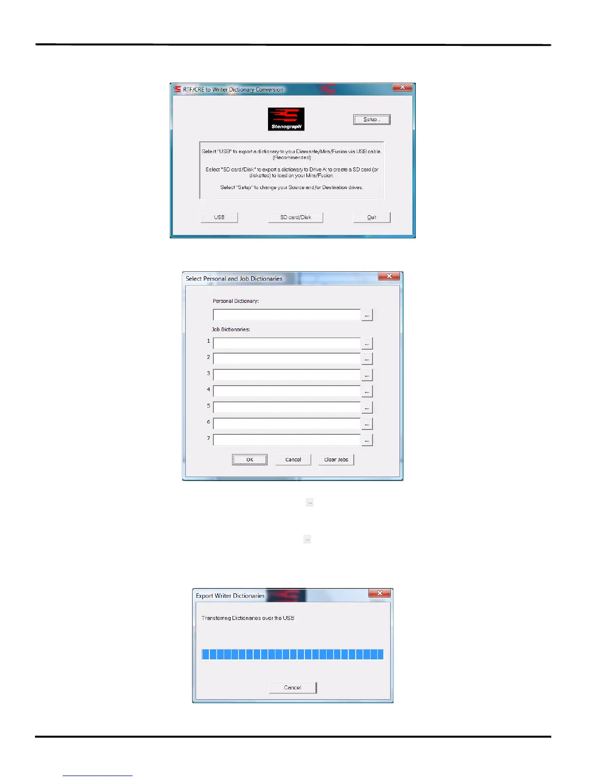 10. Select USB. The Select Personal and Job Dictionaries dialog box displays.