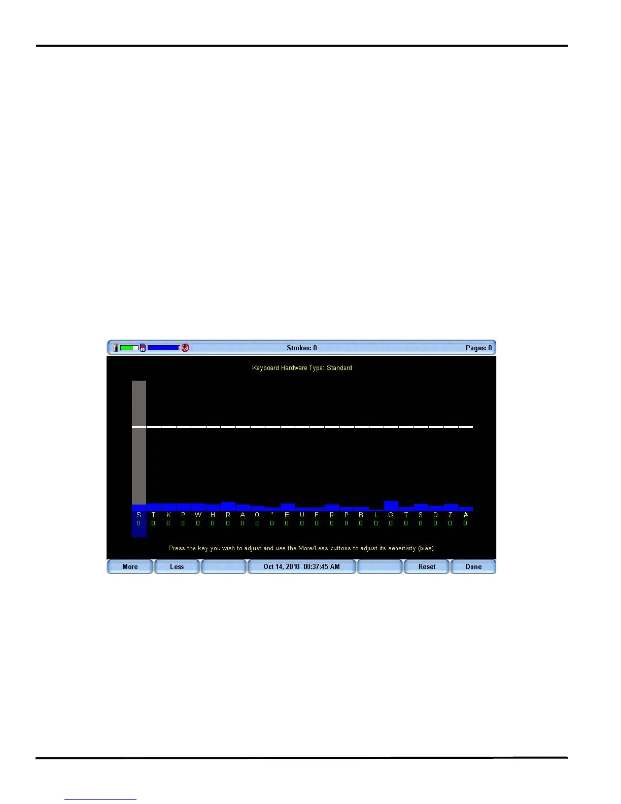 • During a job, press More, Setup, Keyboard, Adjust, Adjust Keys.