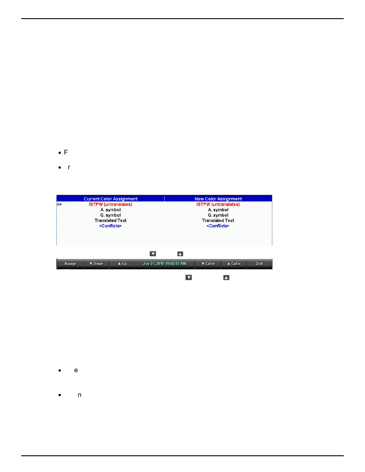 untranslates, questions symbol, answer symbol, text and conflicts.