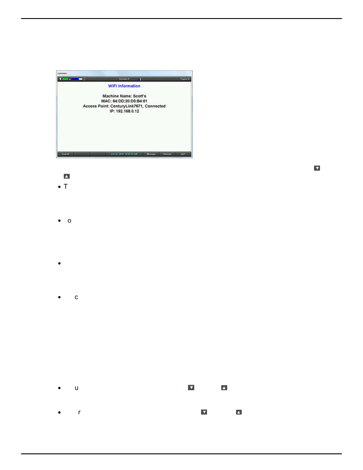 2. At the WiFi screen, touch Manage. If you have more than one WiFi connection, touch the Down