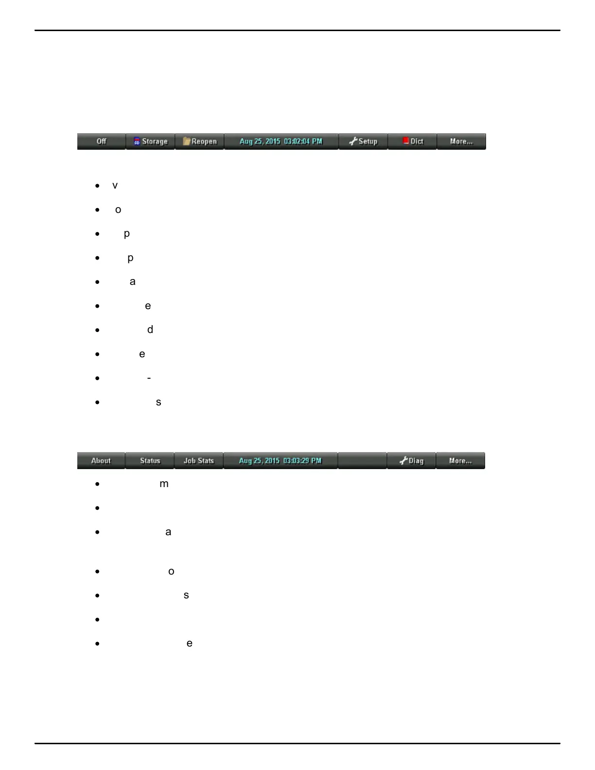 display job data such job size, number of pages and the use of audio and a job dictionary.