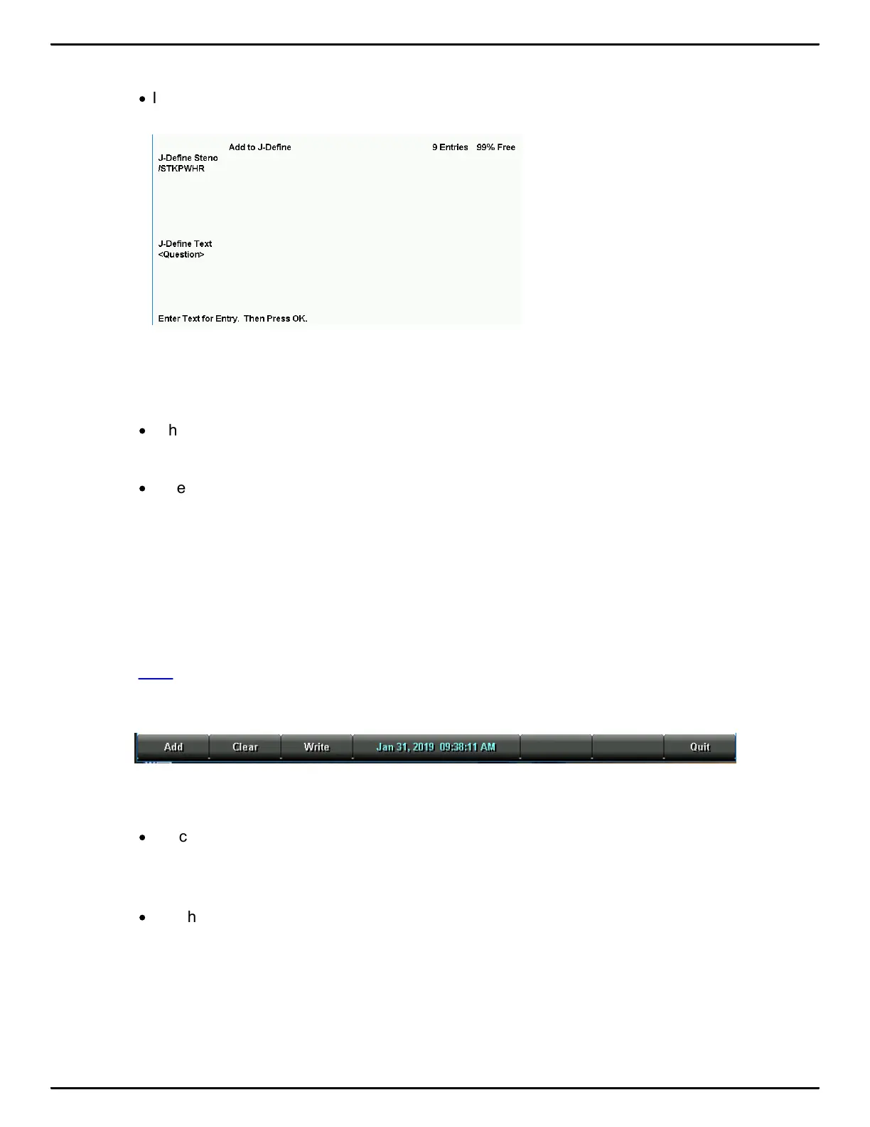 When creating J-Defines while writing, touch Quit. Continue writing.