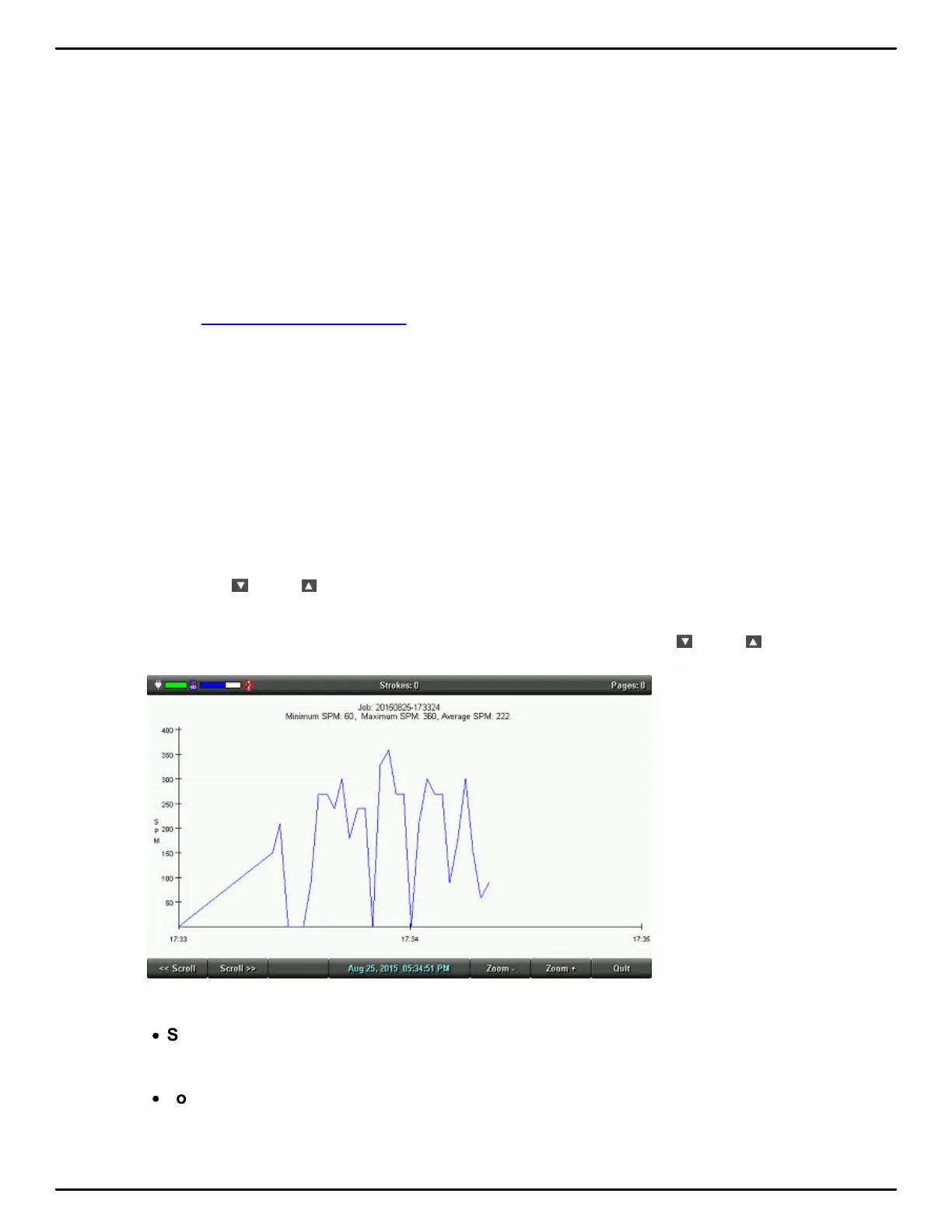 4. To view strokes per minute and the graph for a specific job, touch the Down/ Up sensors to