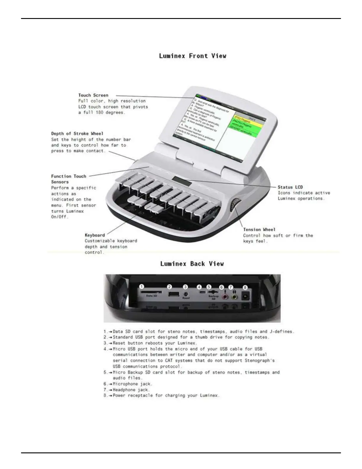 Stenograph LUMINEX - View of the Luminex