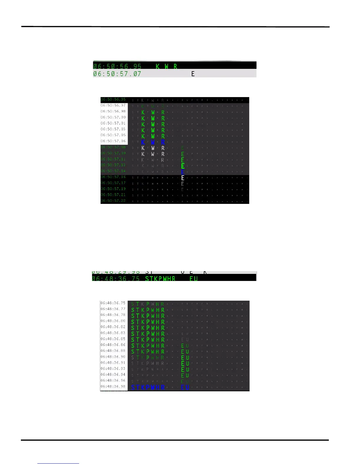 The “K” “W” and “R” keys display in green and register together, as indicated by the blue but are then