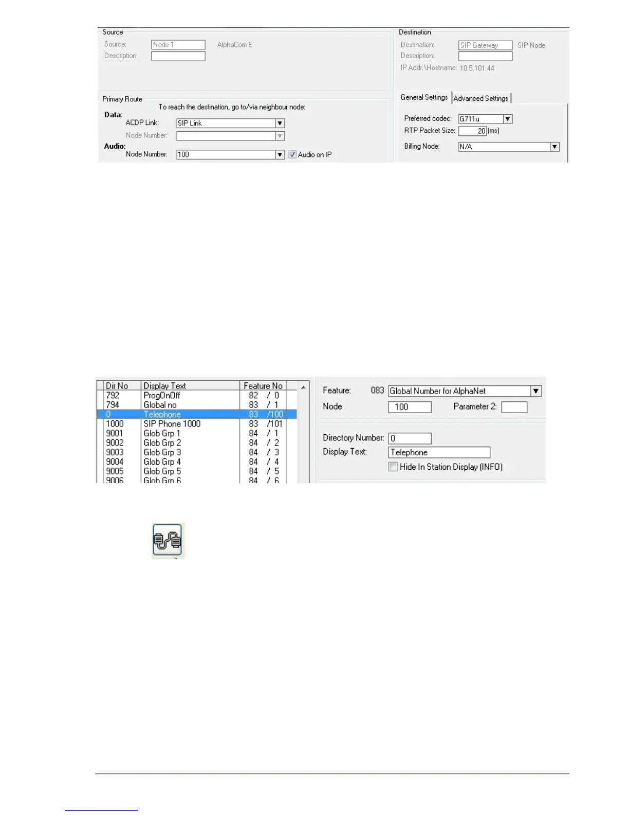 Enter the ● Node number for the SIP Trunk node (100 in this example)