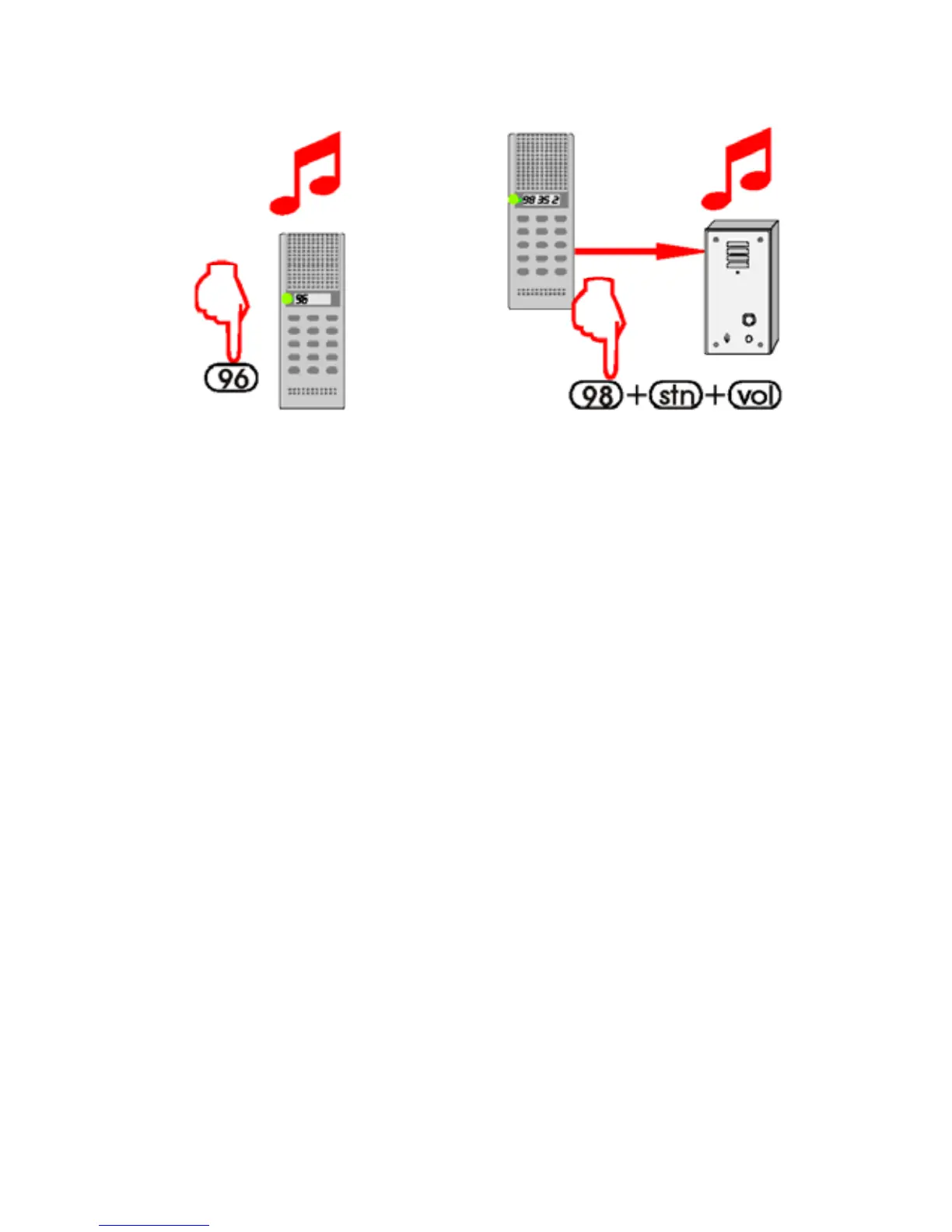 • Dial 98 + substation no. + sound