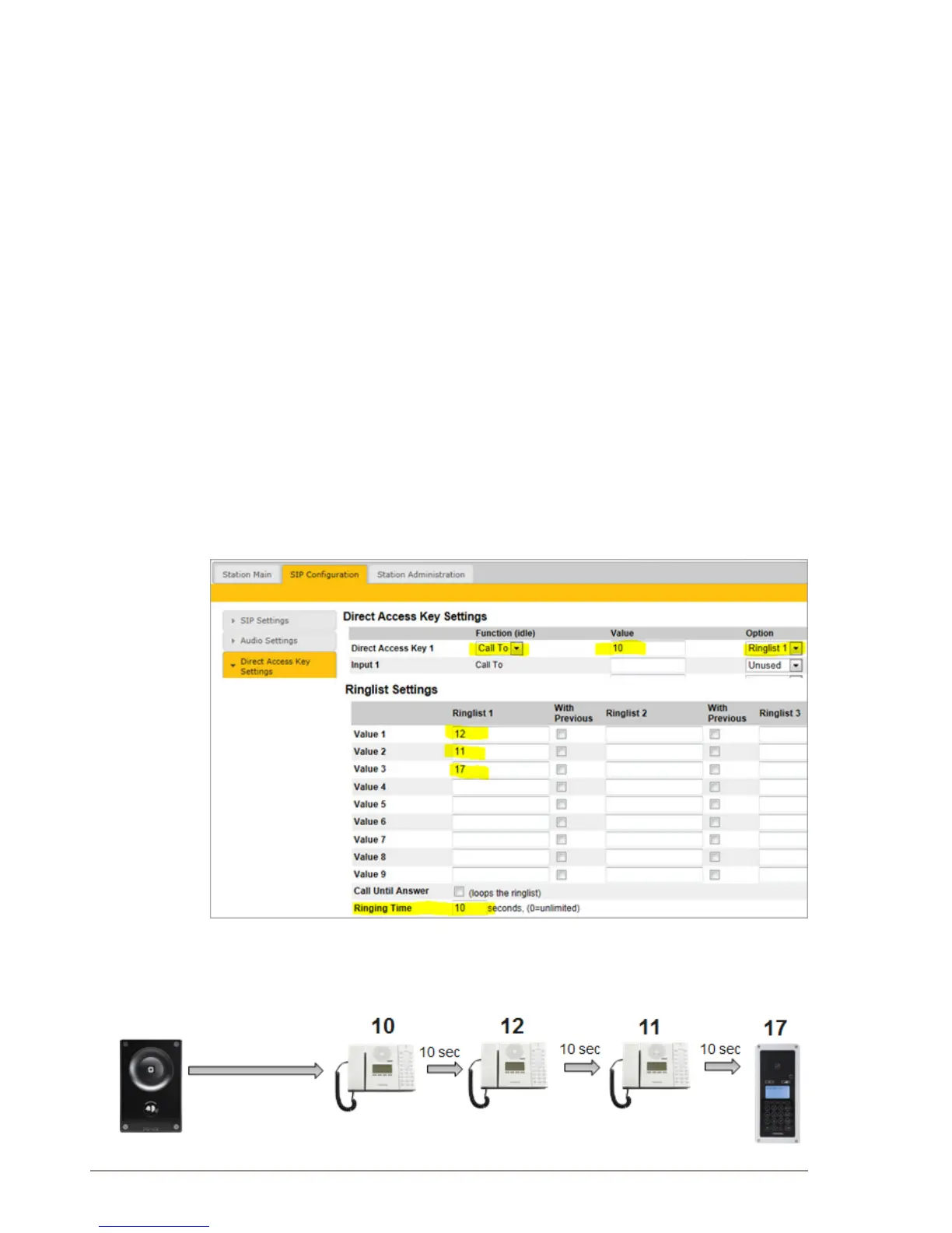 The above example ringlist settings may be illustrated as follows: