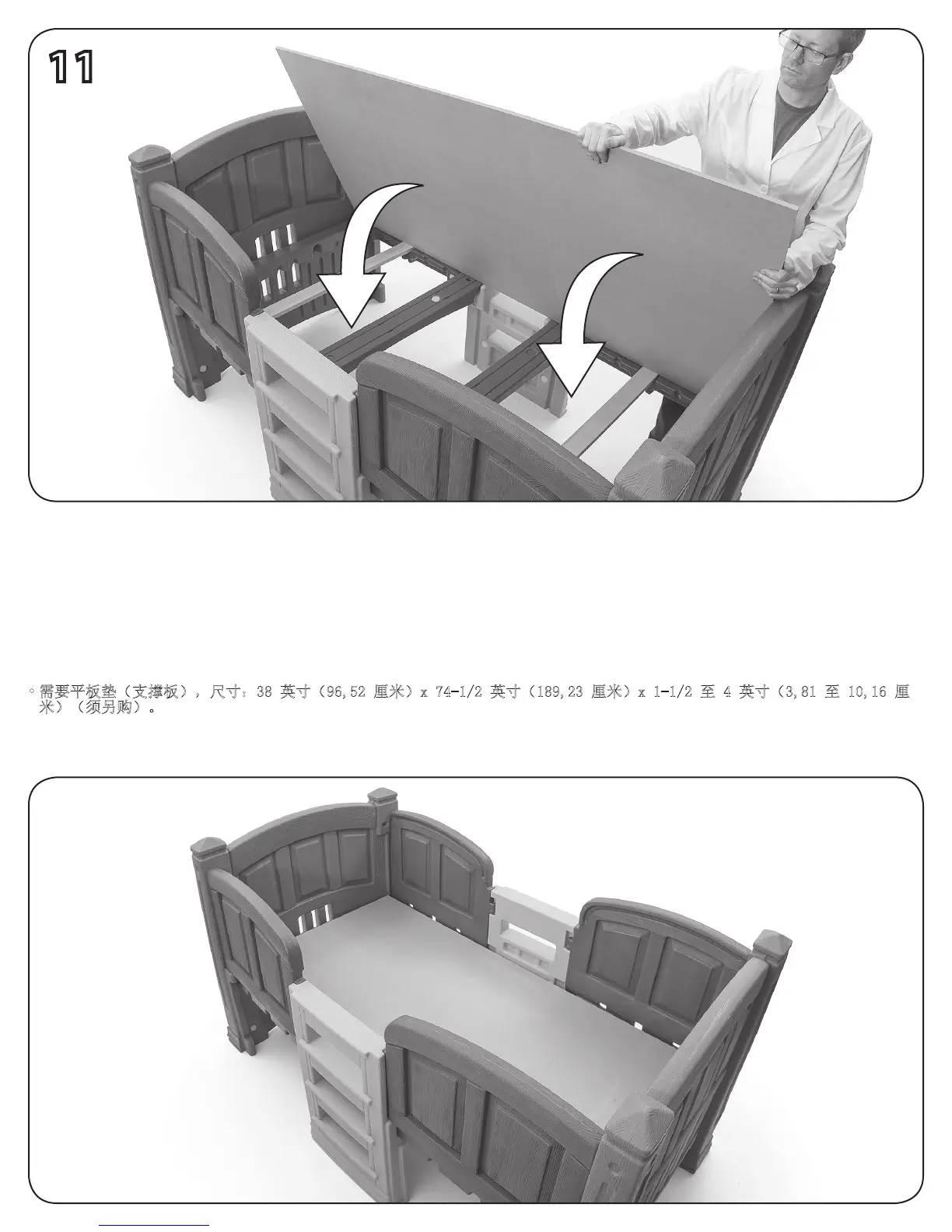 • Requer um suporte de beliche (apoio) do seguinte tamanho: 38 pol. (96,52 cm) x 74-1/2 pol. (189,23 cm) x 1-1/2 pol. até 4 pol. (3,81 cm a
