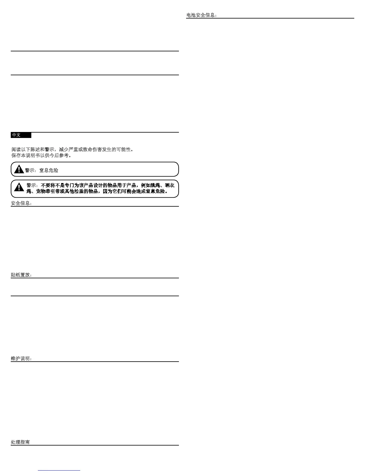 绳、宠物牵引带或其他松垂的物品,因为它们可能会造成窒息危险。