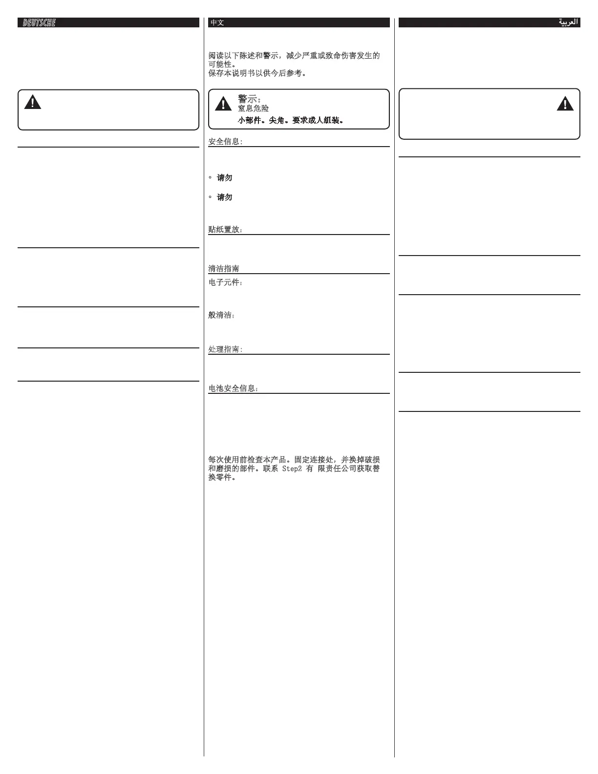 • 告诫儿童不要在产品组装完毕前使用产品。