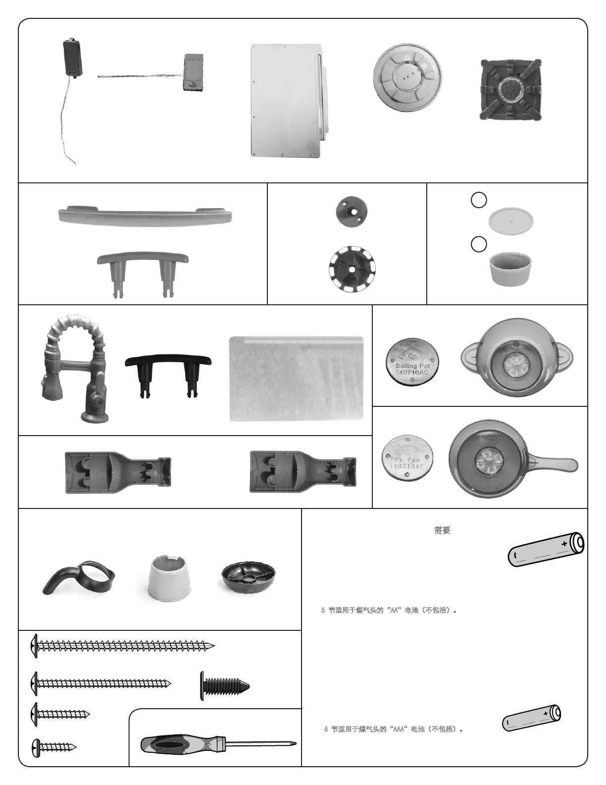 5 pilas AA (NO INCLUIDAS) para el fuego de la cocina.