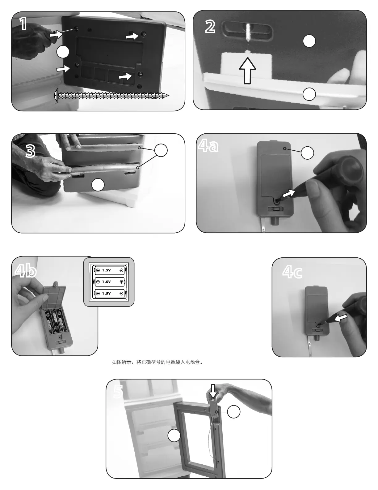 如图所示,将正确型号的电池装入电池盒。