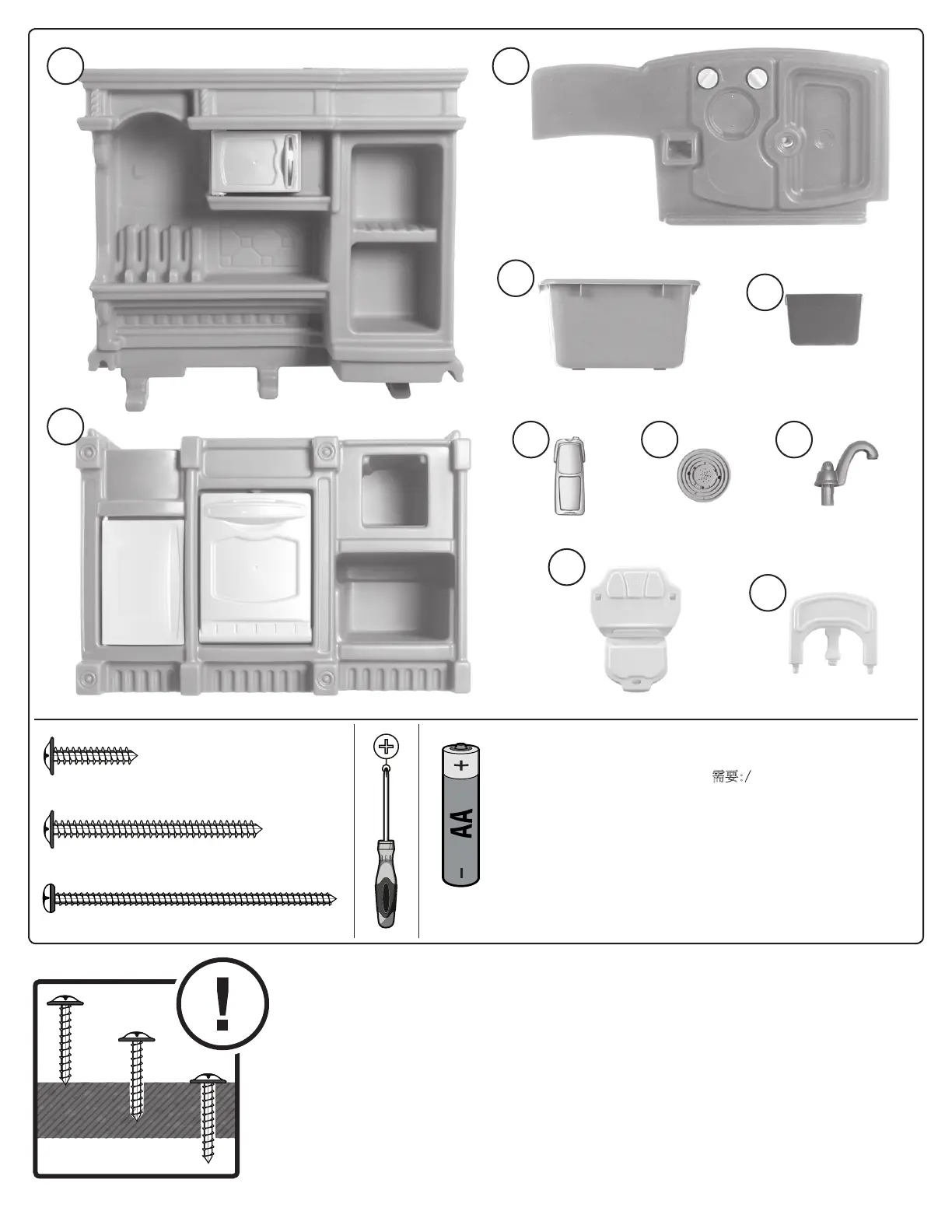 ATTENTIE: Dit product is niet voorzien van schroefgaten. De schroeven vormen hun eigen gaten. Druk uitoefenen.