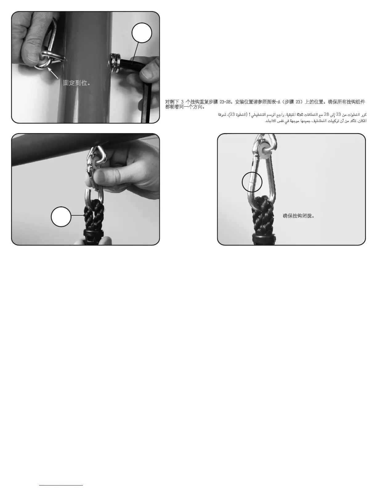 对剩下 3 个挂钩重复步骤 23-28。安装位置请参照图表-A(步骤 23)上的位置。确保所有挂钩组件