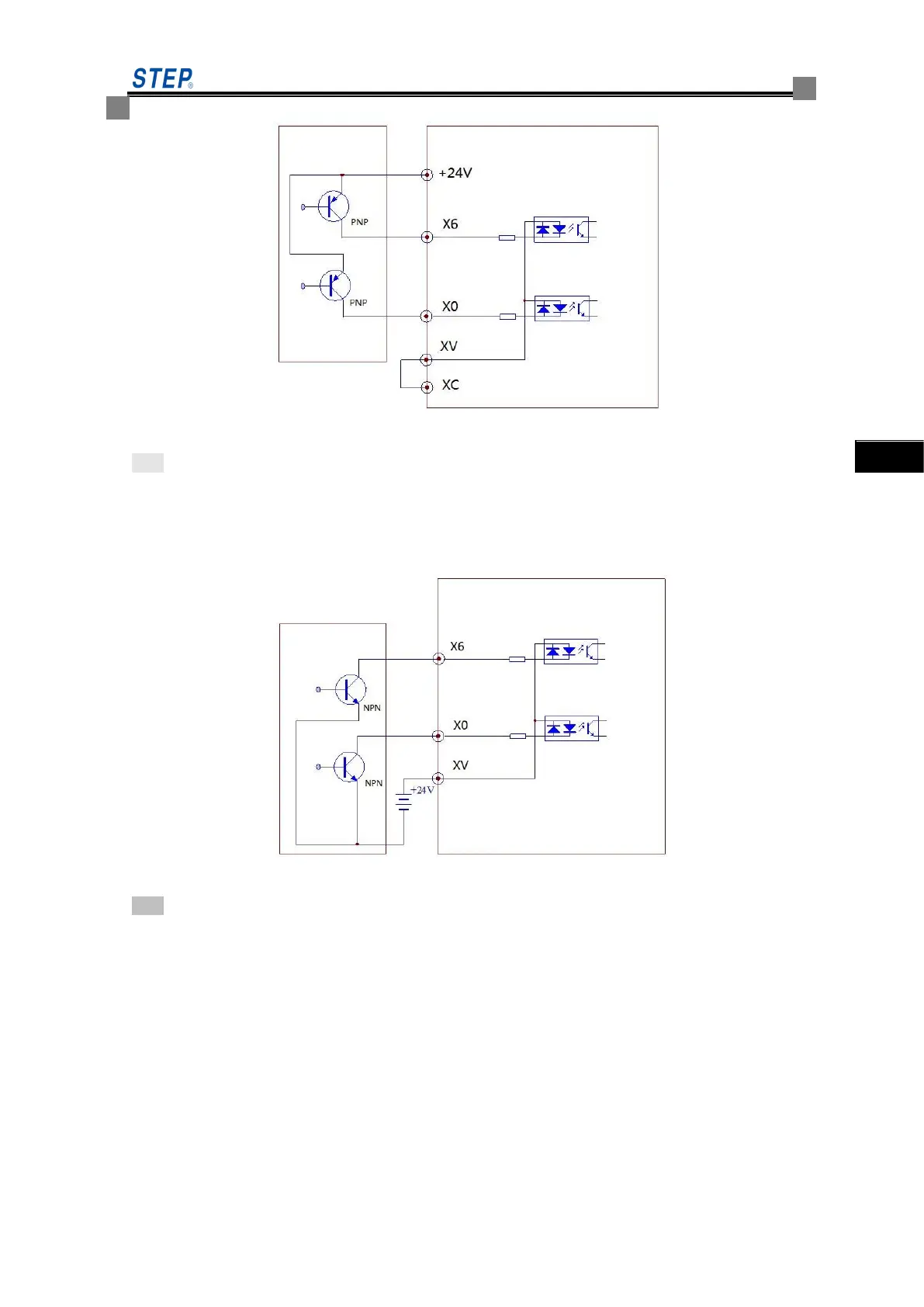 Note: Be sure to remove the shorting piece between +24V and XV terminals, and short XC and XV