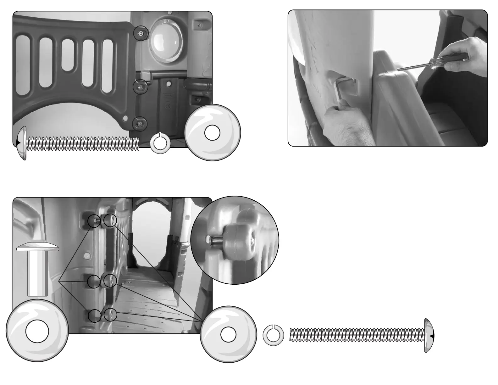 (7,62 cm) Slothead vis, 3 x 5/16” (7,9 mm) Verrouiller la rondelle, 3 x 3/8” (9,53 mm) Grand rondelle. (Grand tour.)