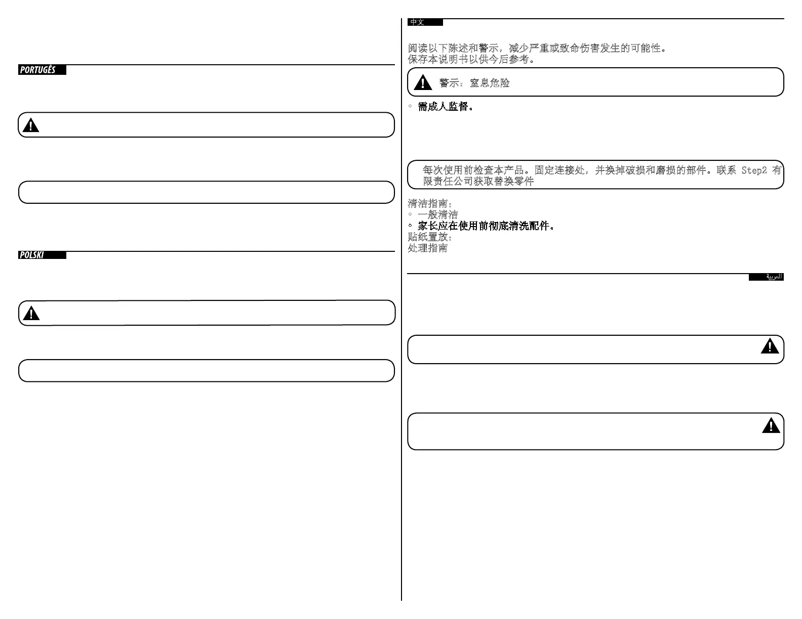 每次使用前检查本产品。固定连接处,并换掉破损和磨损的部件。联系 Step2 有