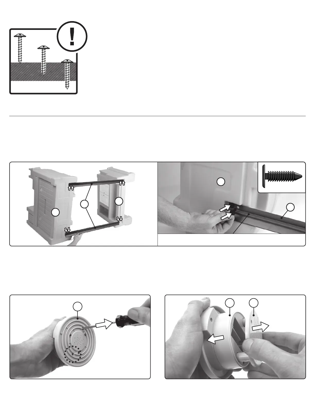 VEUILLEZ NOTER : Le produit n’a pas de trou. Les vis formeront leur propre trou. Visser en appuyant.