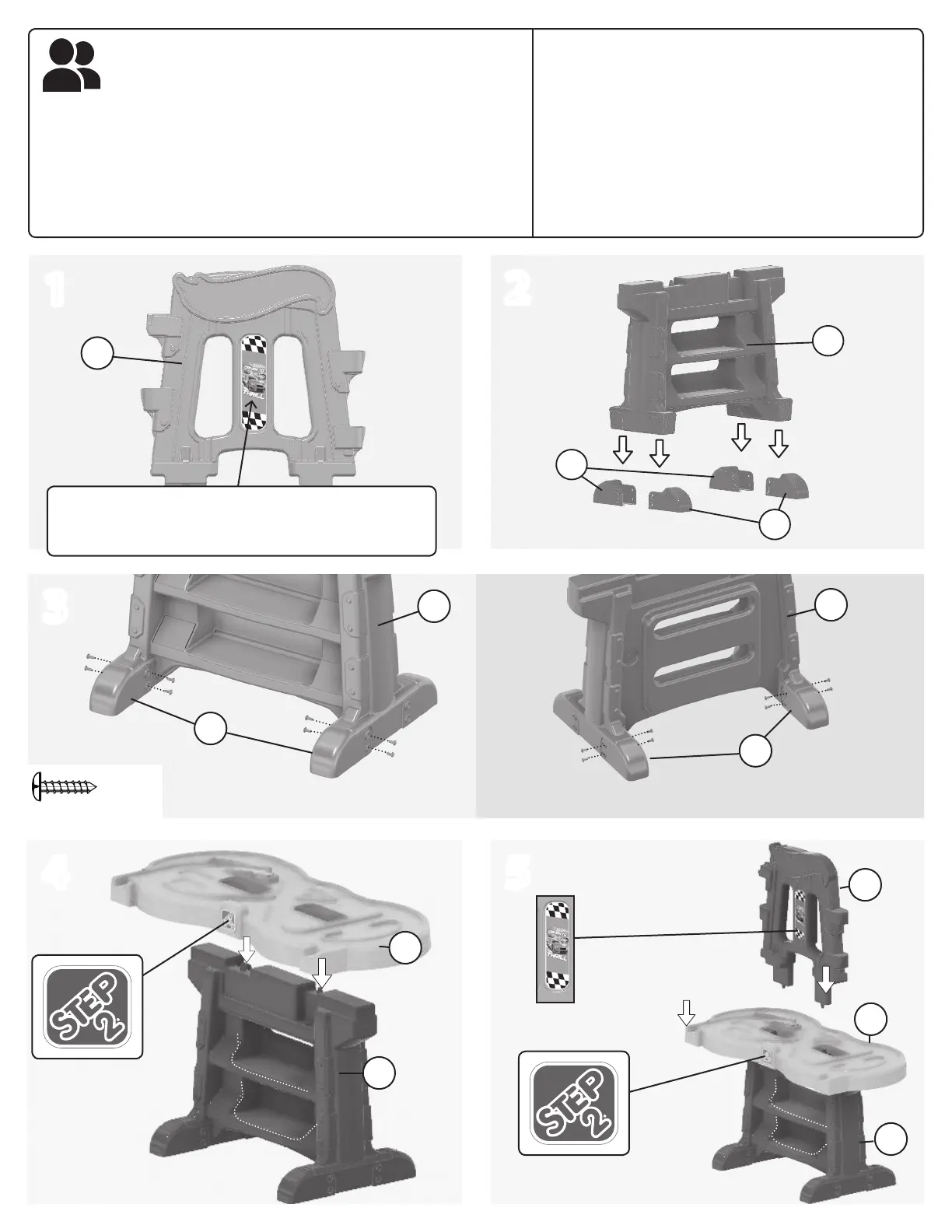 Wymaga udziału dwóch osób. Jedna osoba powinna przytrzymywać produkt, a druga dokręcać wkręty.