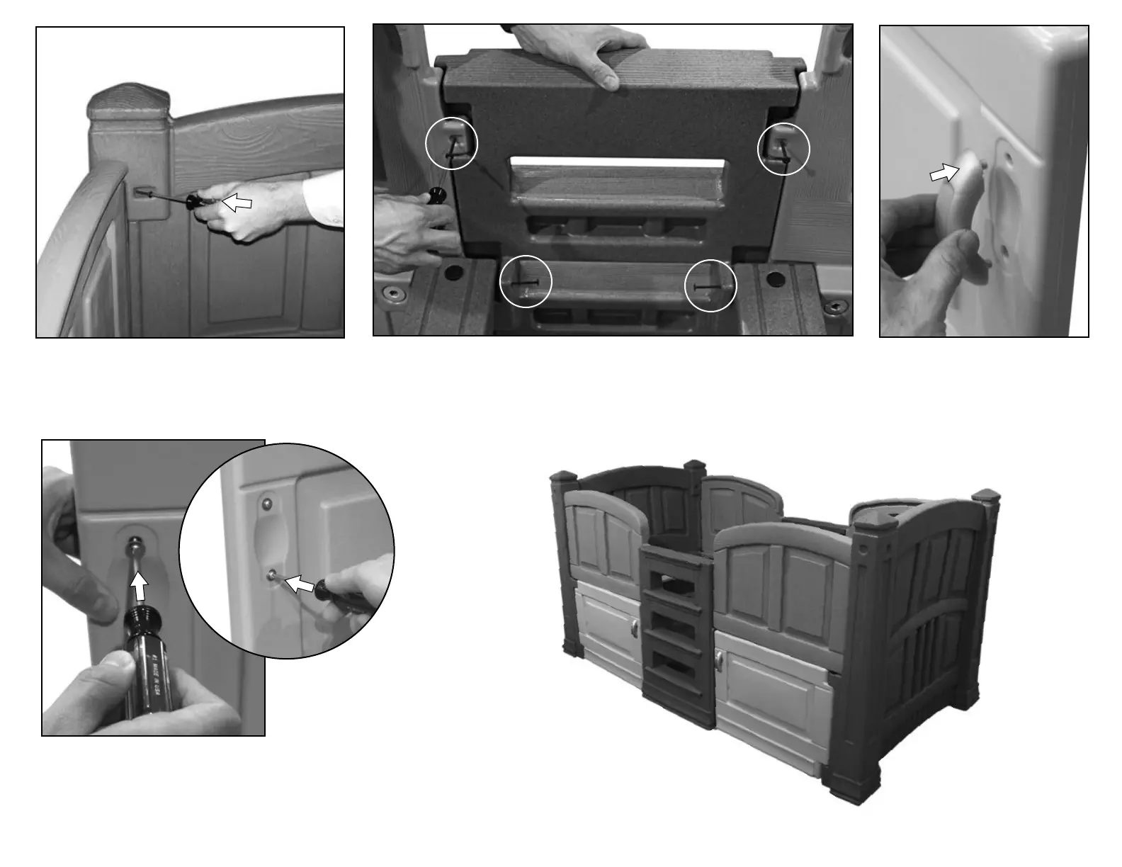 While holding the handle securely, attach with 2 x 1” screws. Repeat steps 12