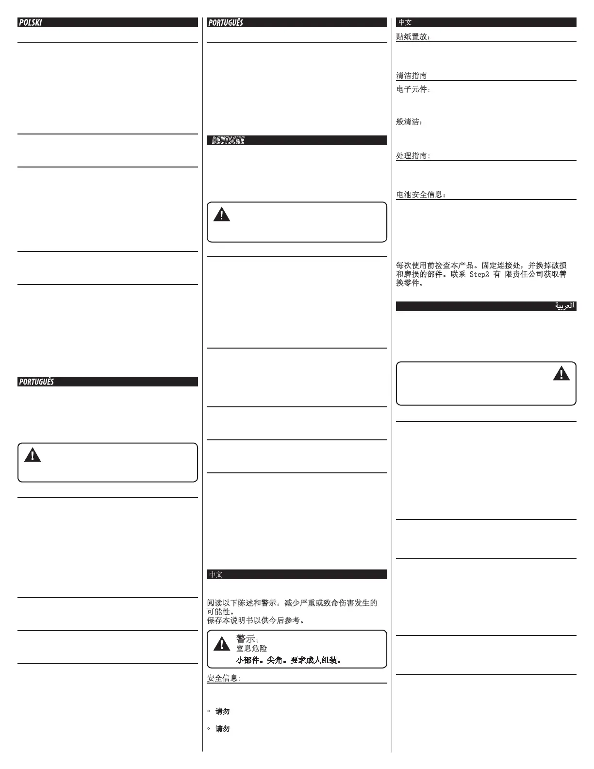 • 告诫儿童不要在产品组装完毕前使用产品。