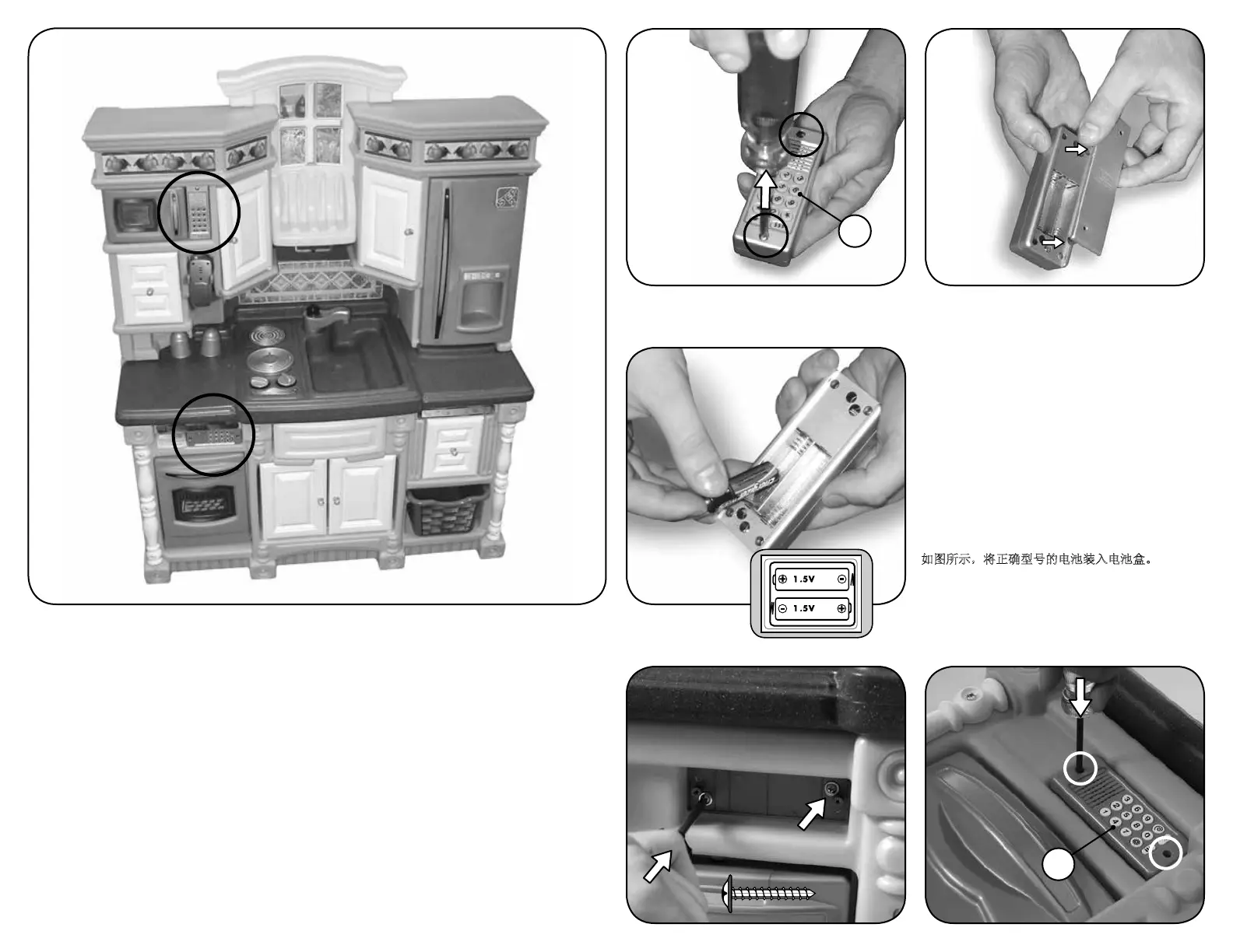 如图所示,将正确型号的电池装入电池盒。