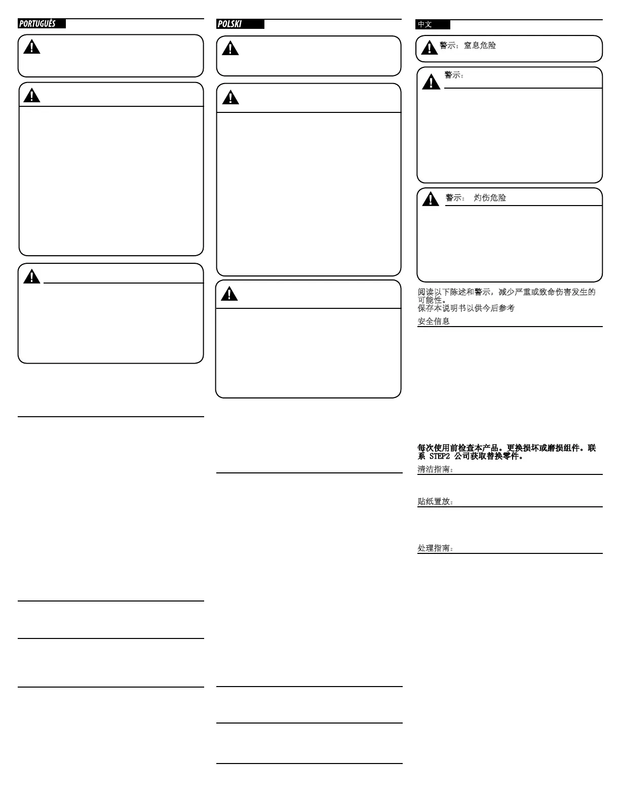• 让孩子在产品上玩耍之前,请始终检查产品