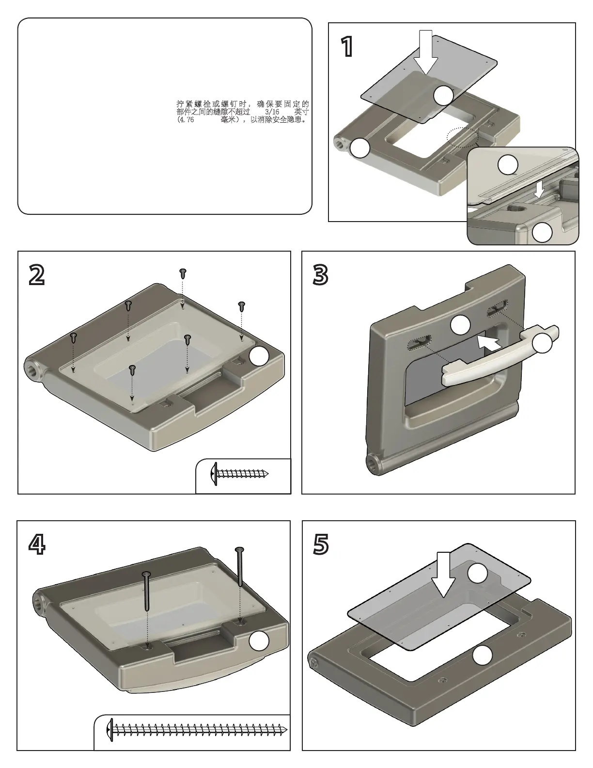 部件之间的缝隙不超过 3/16 英寸