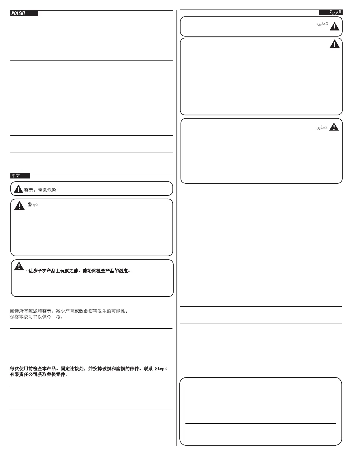 每次使用前检查本产品。固定连接处,并换掉破损和磨损的部件。联系 Step2