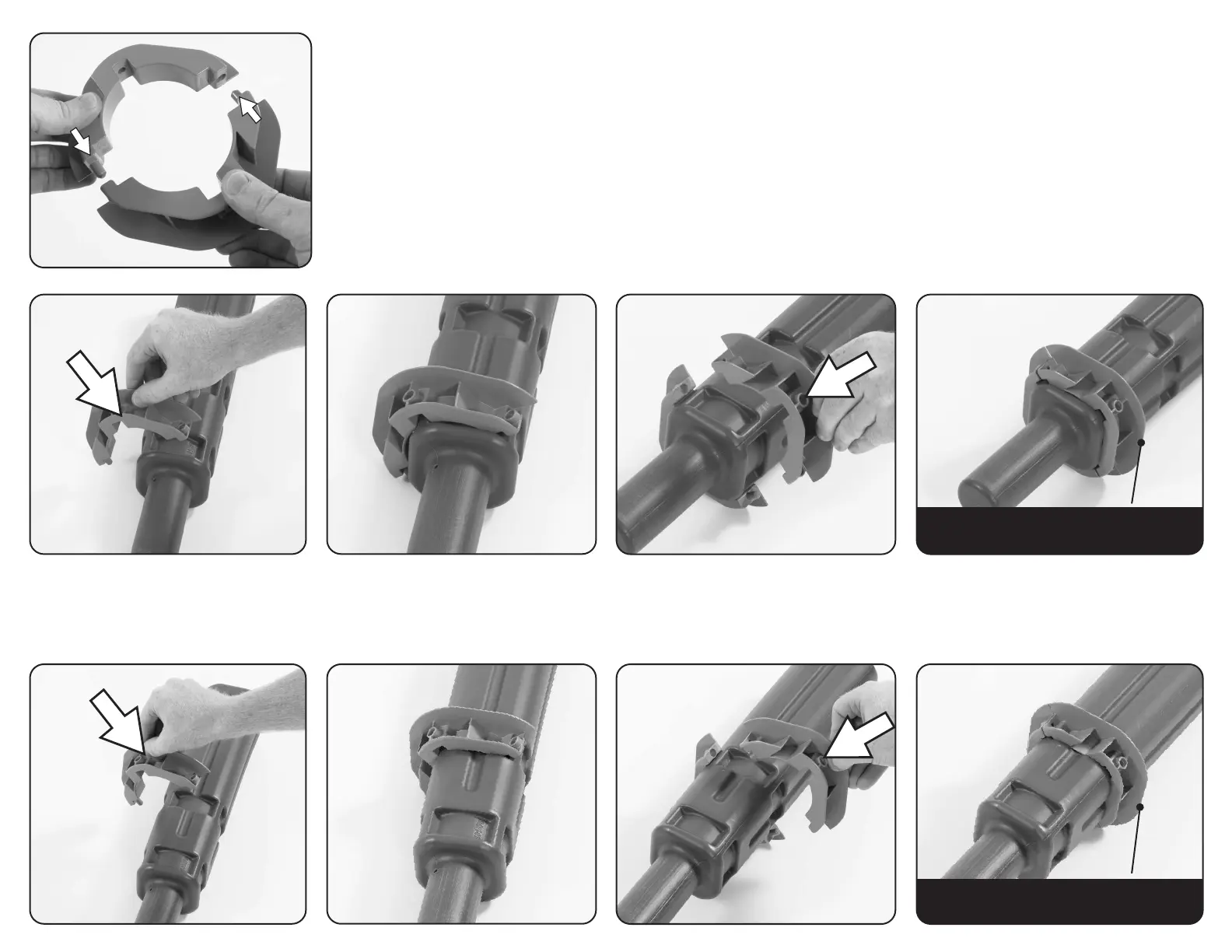 Noter comment les deux renforts de pied (D) s’emboîtent.