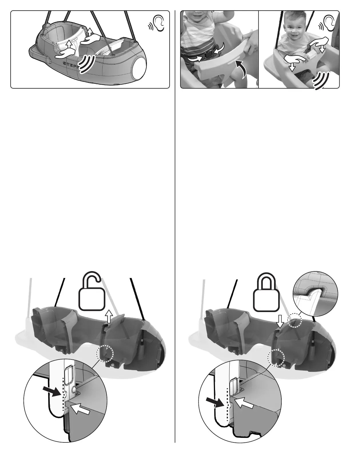 ENFANT SÉCURISÉ: placez l’enfant au centre du siège et FIXER LA CEINTURE