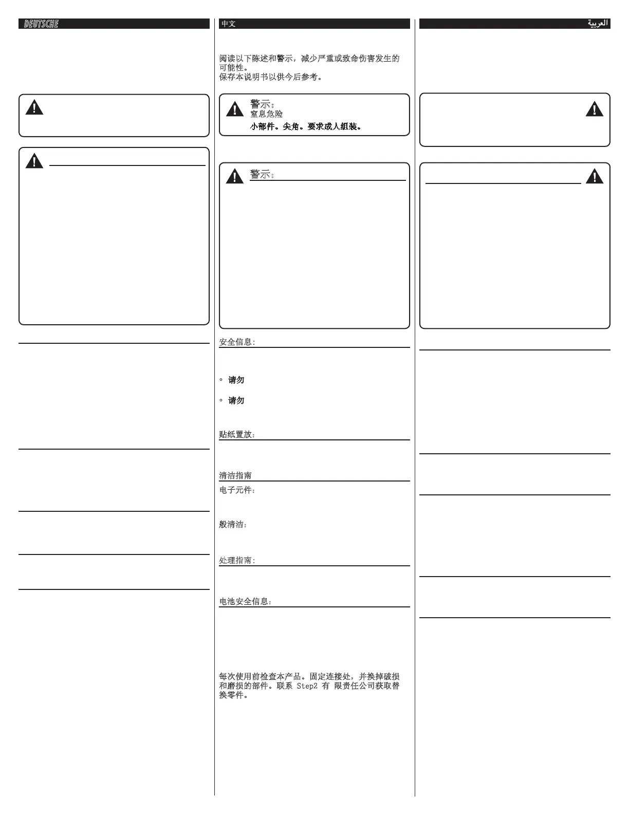 • 告诫儿童不要在产品组装完毕前使用产品。