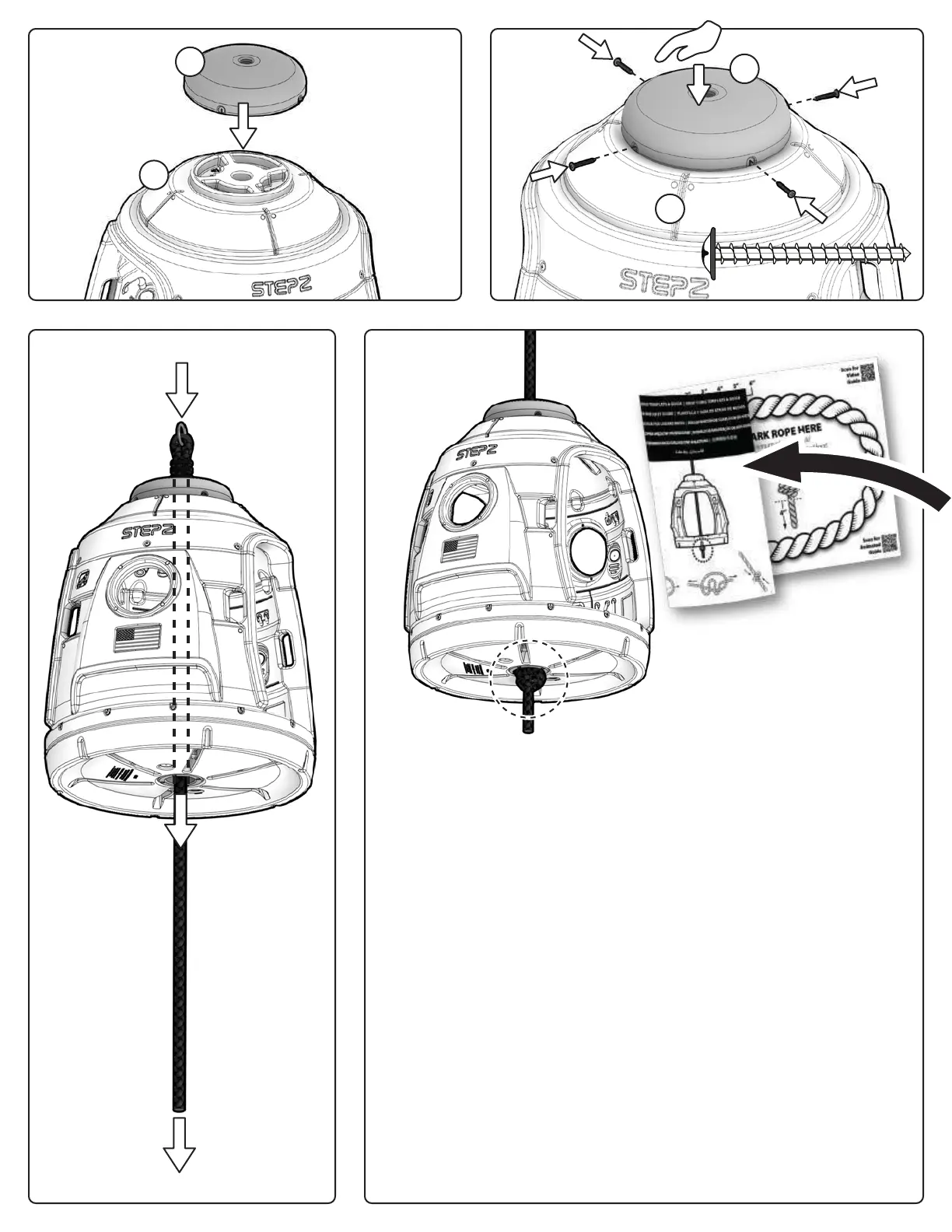d’échelle pour marquer la corde pour assurer un nœud de corde correct avec un minimum de 4 pouces. queue.