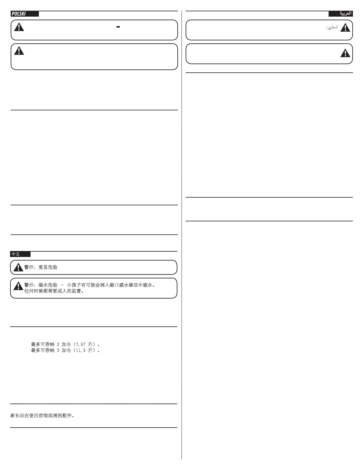 警示:溺水危险 – 小孩子有可能会掉入敞口盛水器皿中溺水。