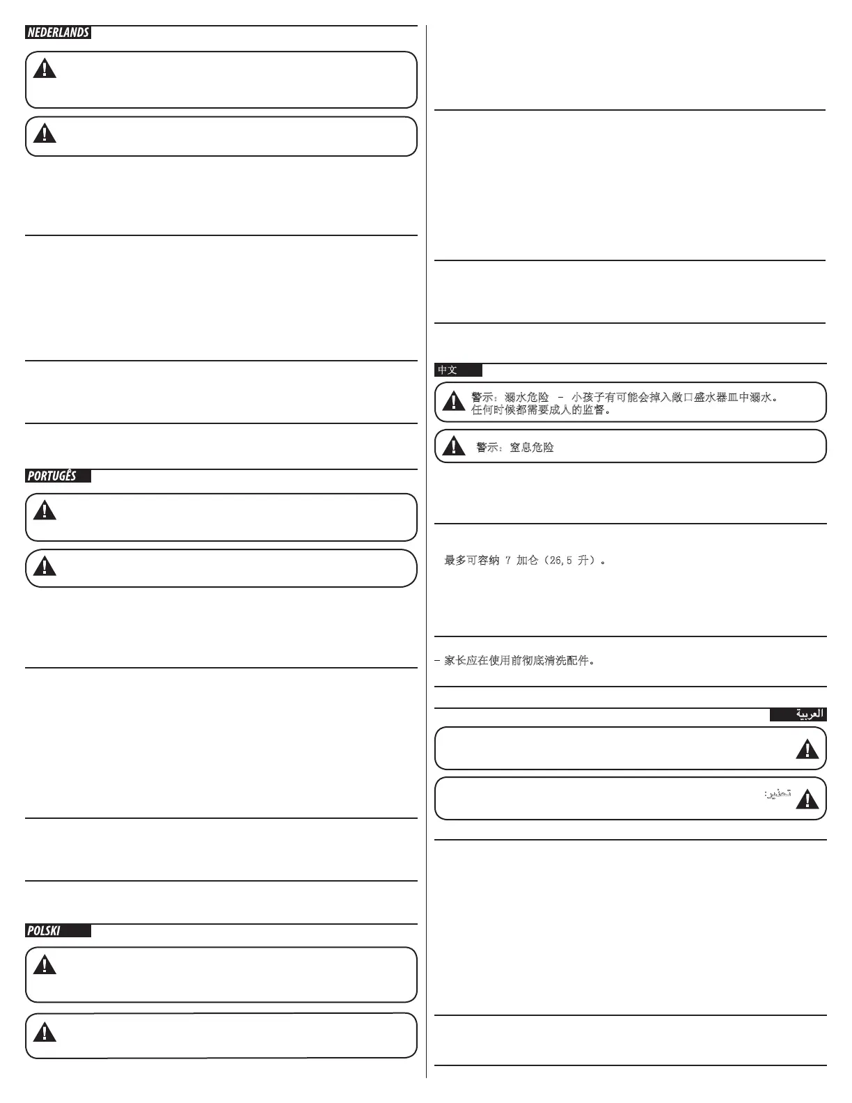 警示:溺水危险 – 小孩子有可能会掉入敞口盛水器皿中溺水。