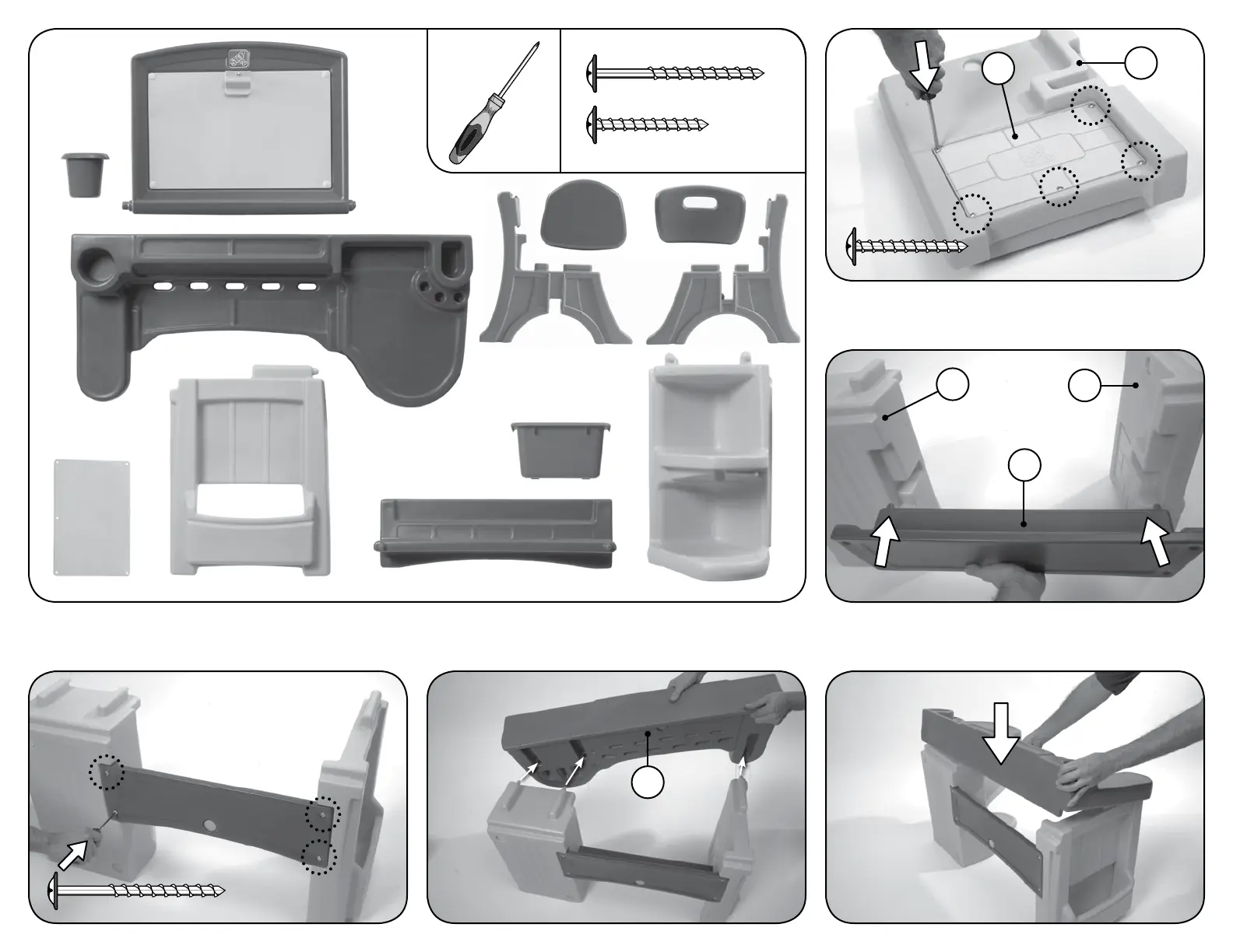 Step2 Studio Art Desk - Assembly Instructions; Part Identification; Step 1: Attaching Legs; Step 2: Securing Support Bar