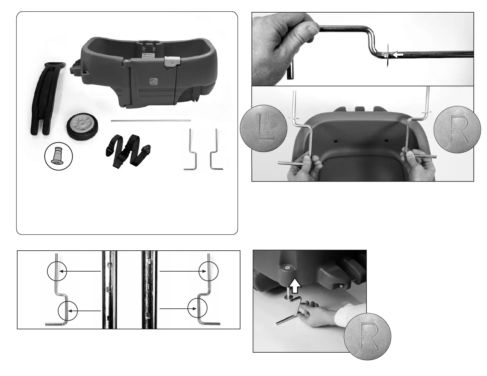 Localiser le (L) et (R) a timbré sur le dessous du Corps de Chariot (A). Glissez une grosse rondelle sur chaque