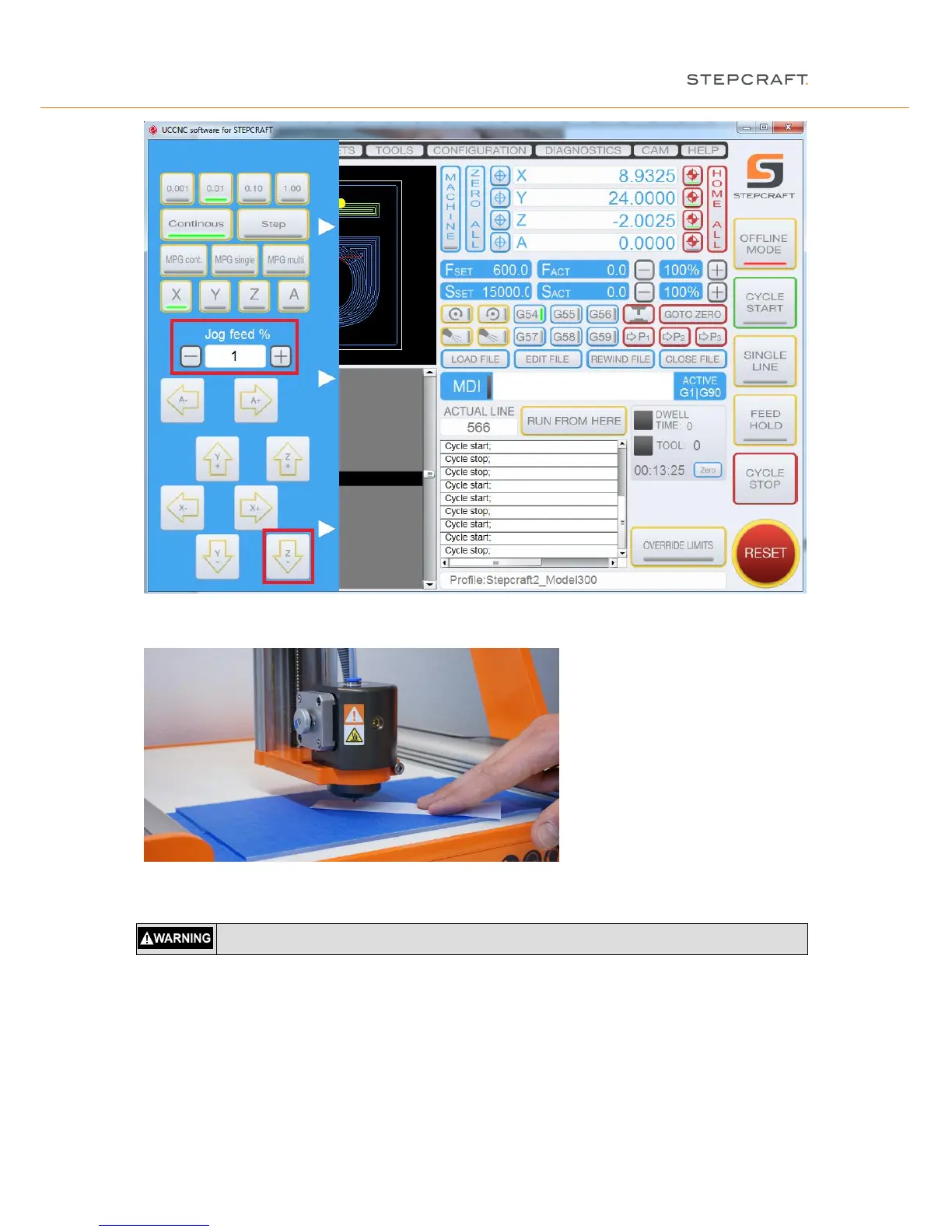 Once the nozzle touches the paper, save that point again as the workpiece zero point X / Y / Z by pressing “Zero