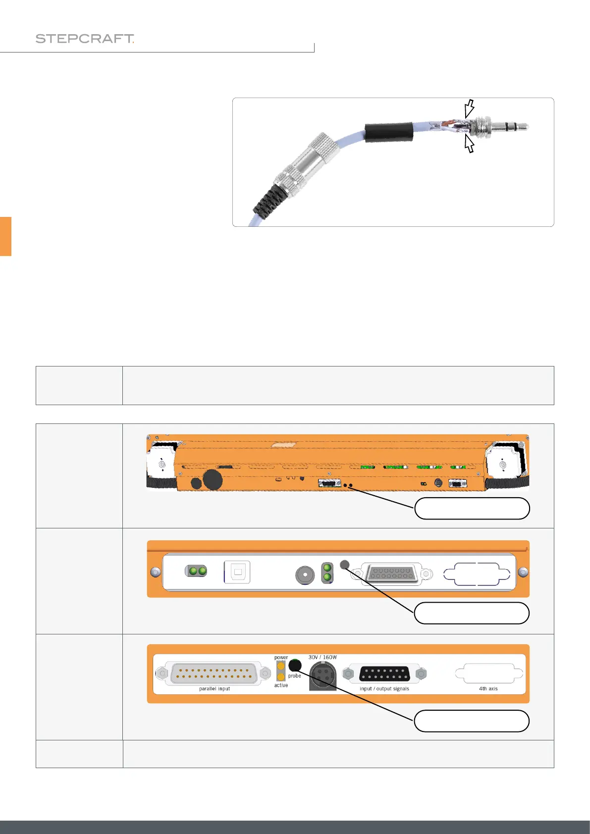 An allen STEPCRAFT-Maschinen können Sie den 3,5 mm Klinkenstecker verwenden, um den 3D-Taster an der Rücksei-