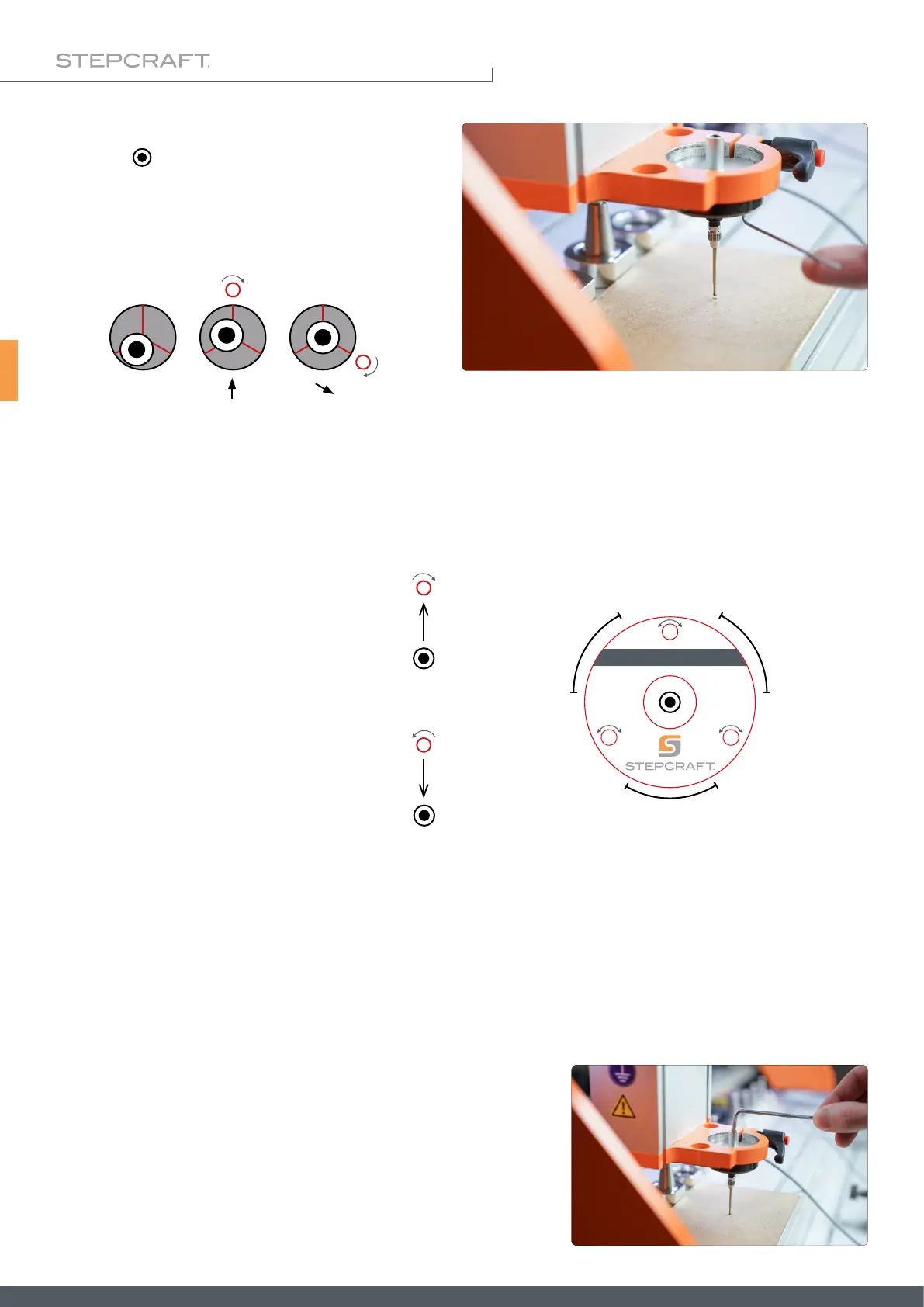 erneut die Lage der Tasterspitze. Wiederholen Sie diesen Vorgang, bis die Tasterspitze exakt mittig ausgerichtet ist.