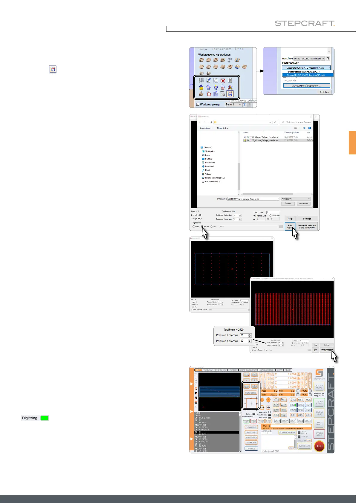 wird nun gescannt. Die Anzeige Digitizing schaltet auf grün