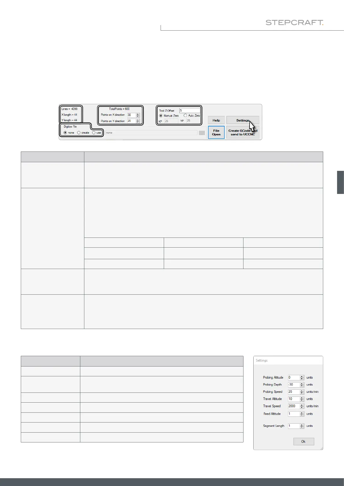 Probing Speed Movement speed during Z-measurement.