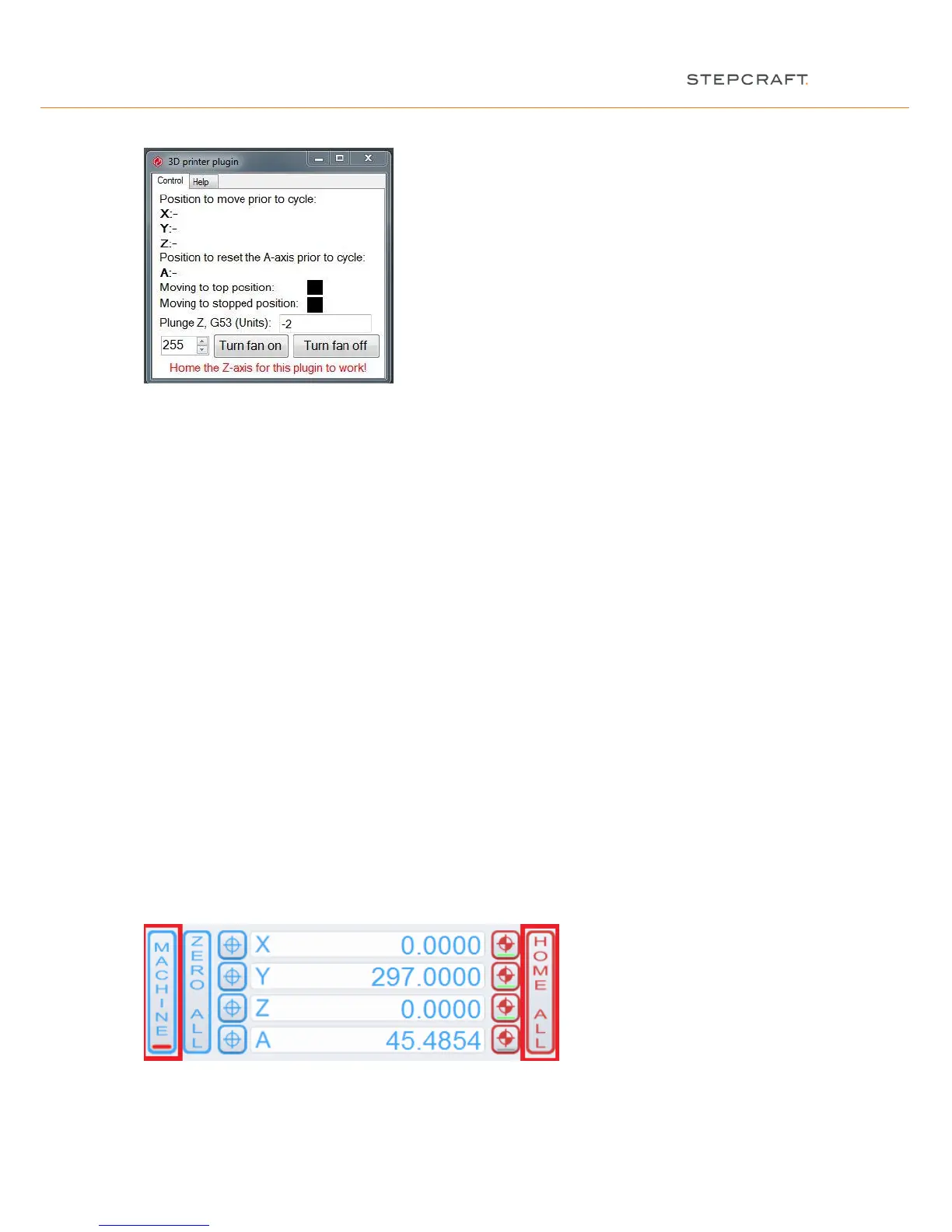 The 3D printer plugin is not ready to work because of the missing homing sequence (see later item 2.7):