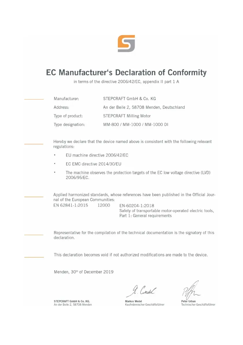 STEPCRAFT MM-800 - 8 Declaration of Conformity