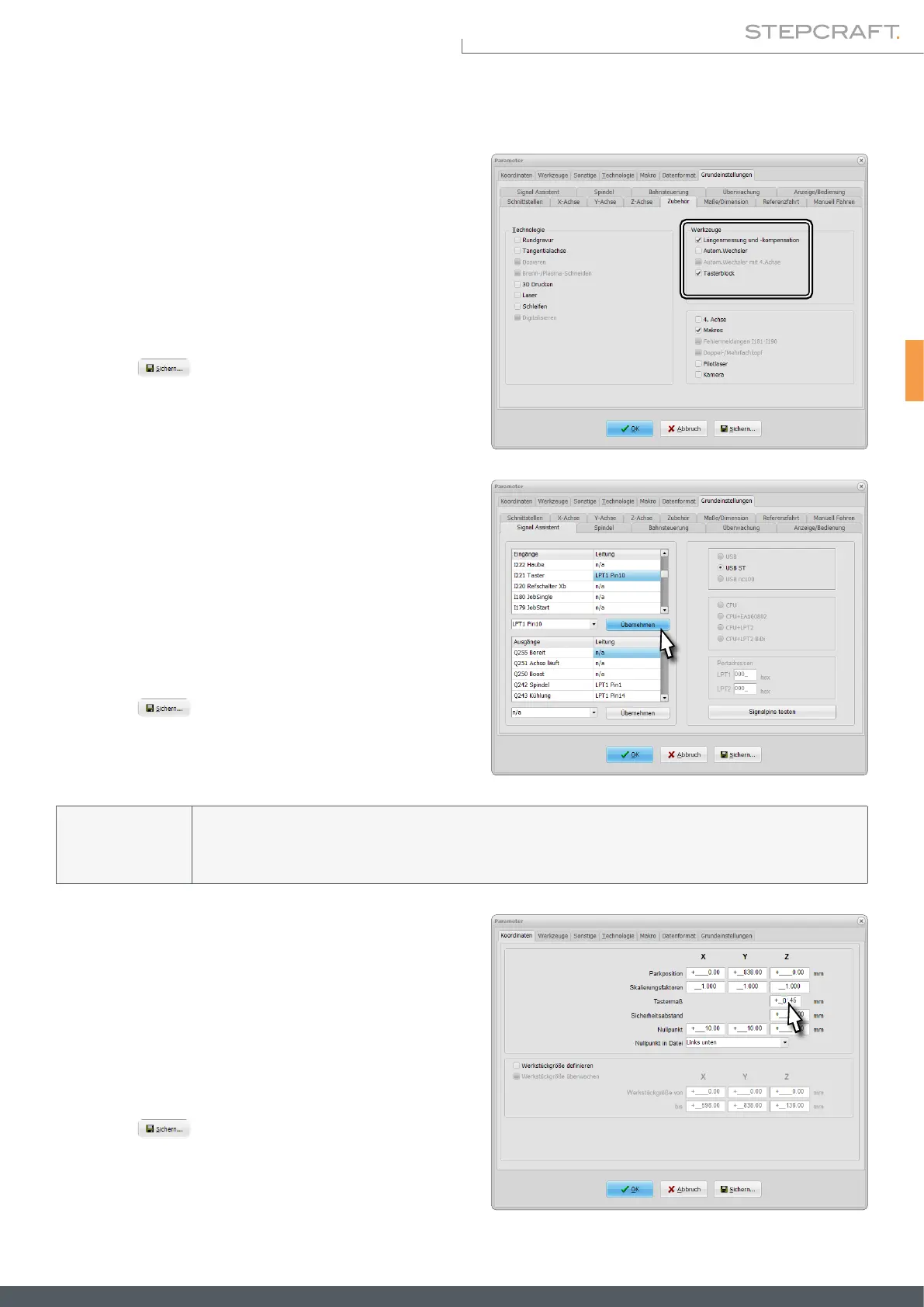 Zur Einrichtung des Tastfühlers in WinPC-NC, klicken Sie auf