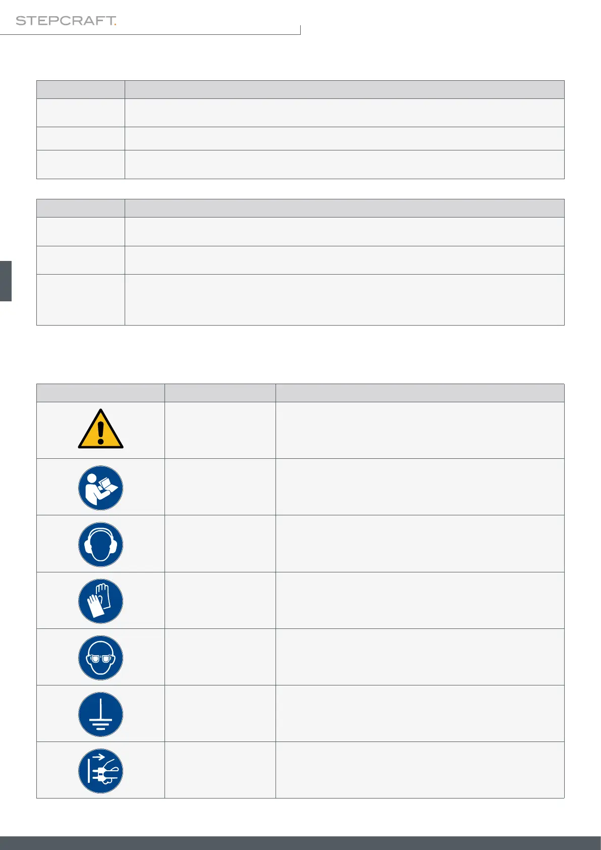 Use protective gloves Alerts the user to wear protective gloves (but never during operation!)